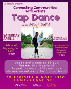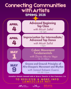 Micah Sallid was born in Los Angeles and began studying with Arlene Kennedy Universal Dance Design and performed with the Kennedy Tap Company, and later moved to the south to become a company member of Decatur City Dance. While trying to find her own choreographic and creative voice she toured, studied, and choreographed for the Broadway Dreams Foundation traveling all over the country. Micah graduated from Saint Mary’s College of California with a BA in Dance and a minor in Women & Gender Studies. Within her college career two of her choreographed pieces represented Saint Mary’s College at ACDA. Micah is currently a faculty member at Saint Mary’s College and performs with the Bay Area Tap company La Mezcla.